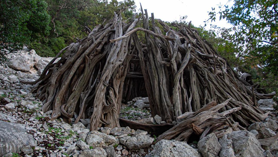 La splendida capanna di Piddi è posta su un ampio gradone boscato, sospeso sopra la foresta di Biriala e la cala sottostante. Poco distante dall’ovile, una strettissima spaccatura costituisce uno dei passaggi più spettacolari del noto trekking Selvaggio Blu, mentre da alcune rocce a picco sul mare si osserva un panorama vertiginoso su Billaricoro, meglio nota come Cala Biriala. La capanna, sormontata da un ampio cappello in ginepro, è in ottime condizioni, così come l’ampia corte, qui raffigurata. Nella zona insistevano anche altri insediamenti, ormai scomparsi. L’insediamento si raggiunge tramite il Selvaggio Blu o con una breve deviazione dall’itinerario che porta alla spiaggia, nel quale si trovano aree e spettacolari scalas de fustes.